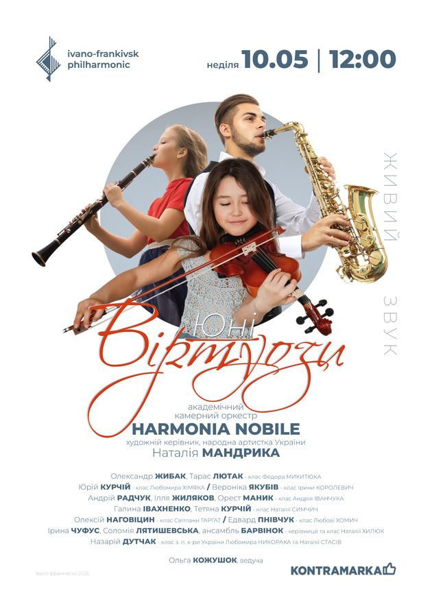 Юні виконавці — флейтисти, піаністи, кларнетисти, вокалісти — виступлять разом із Академічним камерним оркестром «HARMONIA NOBILE» під керівництвом народної артистки України Наталії МАНДРИКИ. Їхнє спільне виконання наповнить зал теплом, красою та щирими емоціями.