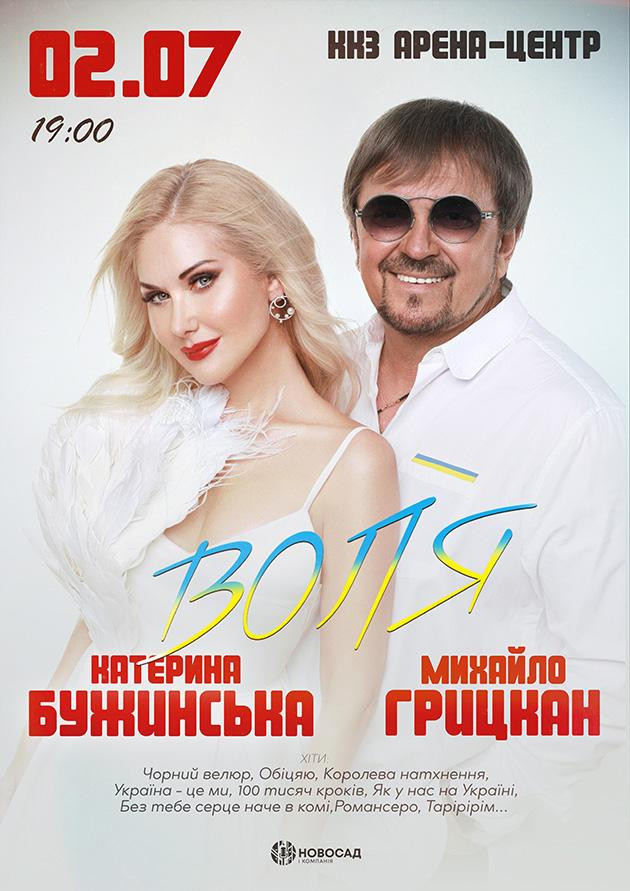 Дует, який підкорив світ, їхні пісні знають та обожнюють мільйони! Катерина Бужинська та Михайло Грицкан – справжні народні улюбленці. На їхніх концертах ви не зможете всидіти на місці. Живий звук, незабутні емоції, нові премʼєри та улюблені пісні - все це чекає на Вас. Разом заспіваємо «Чорний велюр», «Королева натхнення», «Тарірірім», «Романсеро» «Україна – це ми», «100 тисяч кроків» та багато інших пісень, що стали справжніми музичними шедеврами.