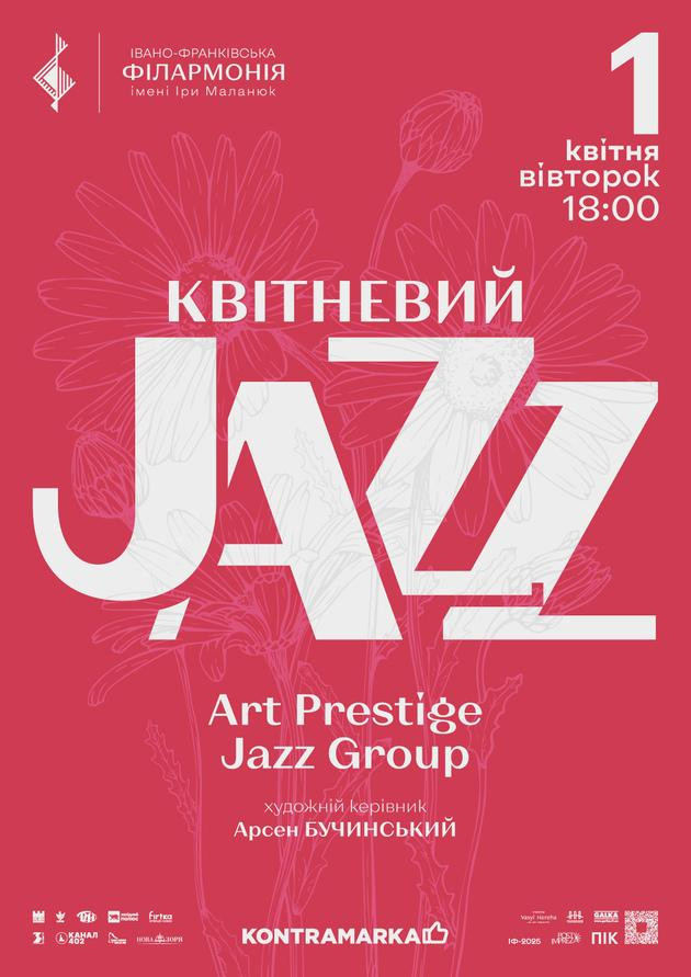 Ми запрошуємо Вас на особливий концерт - “Квітневий джаз” у виконанні джазового гурту Art Prestige. Як перші теплі промені сонця пробуджують природу, так і ритми джазу наповнять ваші серця енергією та натхненням. Пориньте в атмосферу теплого весняного джазу!