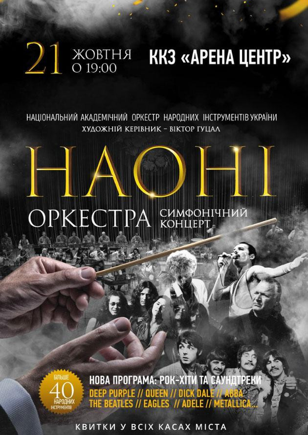 НАОНІ Оркестра: «Рок-хіти та саундтреки» в Івано-Франківську! 21 жовтня в Арена Центрі Івано-Франківська відбудеться концерт легендарного НАОНІ Оркестра з програмою «Рок-хіти та саундтреки».