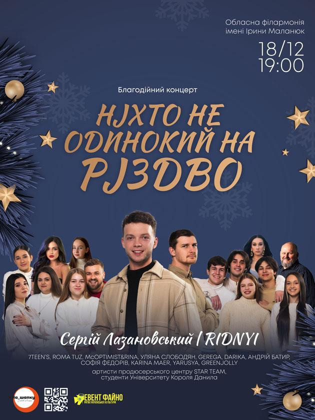 Відчуй атмосфер Різдва на благодійному концерті "НІХТО НЕ ОДИНОКИЙ НА РІЗДВО" Авторський проєкт Сергія Лазановського - переможця Голос Країни 11, актора та диктора.