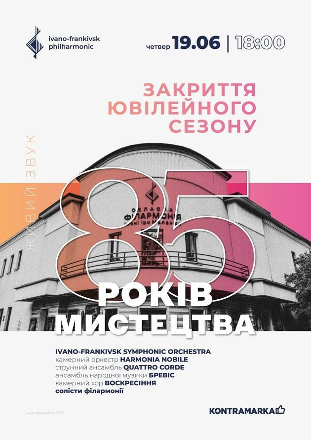 Догорі поціновувачі музики! Запрошуємо на урочисте «ЗАКРИТТЯ ЮВІЛЕЙНОГО СЕЗОНУ» філармонії! Не пропустіть подію, яка увінчає сезон, сповнений творчості, відкриттів і натхнення!
